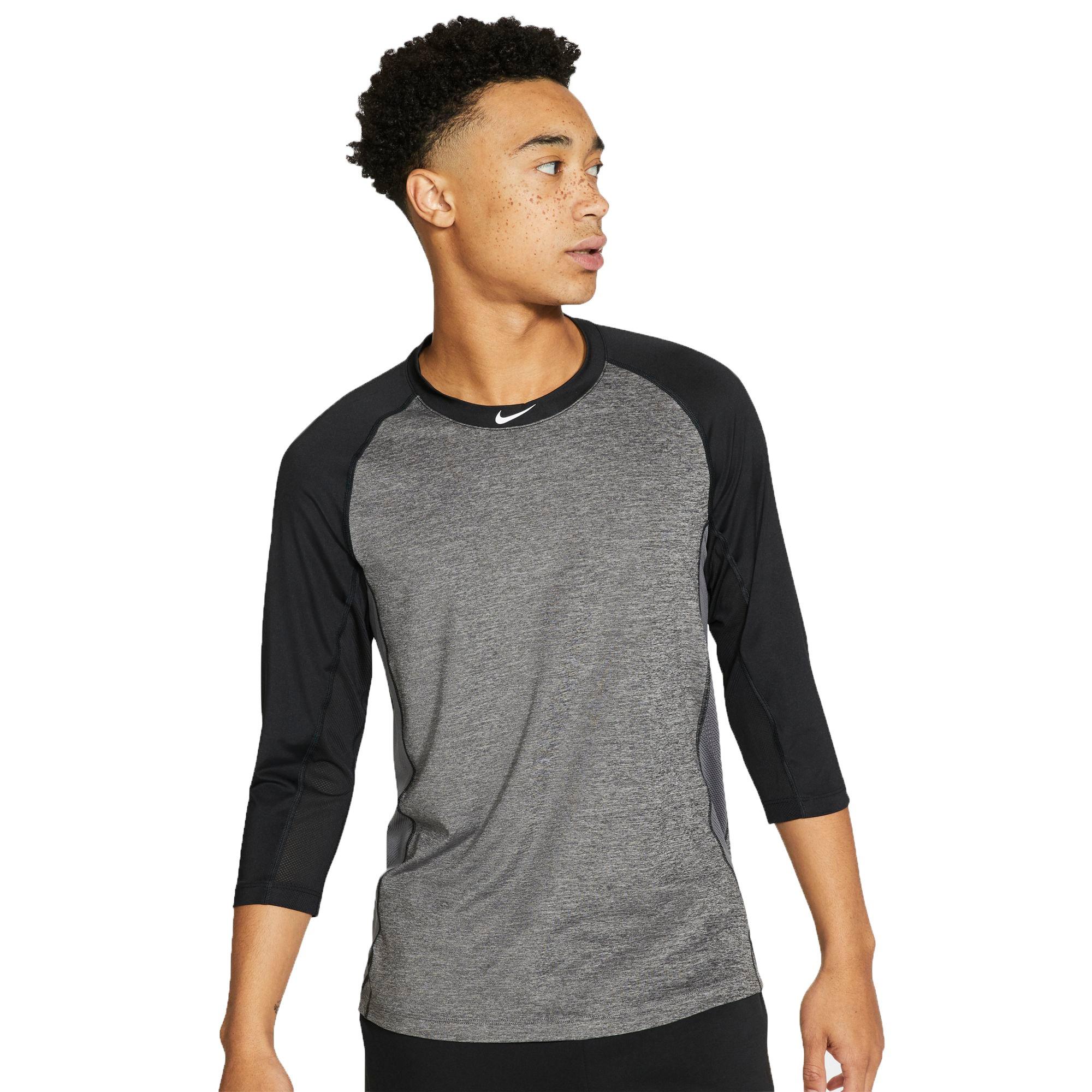 Nike Men S Pro Dri Fit 3 4 Sleeve Baseball Tee Grey Black Hibbett City Gear